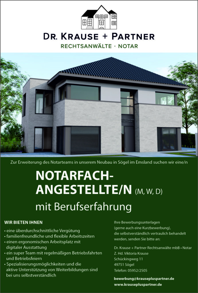 Dr. Krause + Partner RAe · Notare | 49751 Sögel | bewerbung@krausepluspartner.de